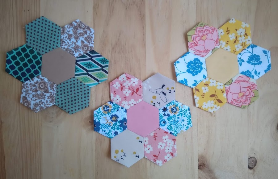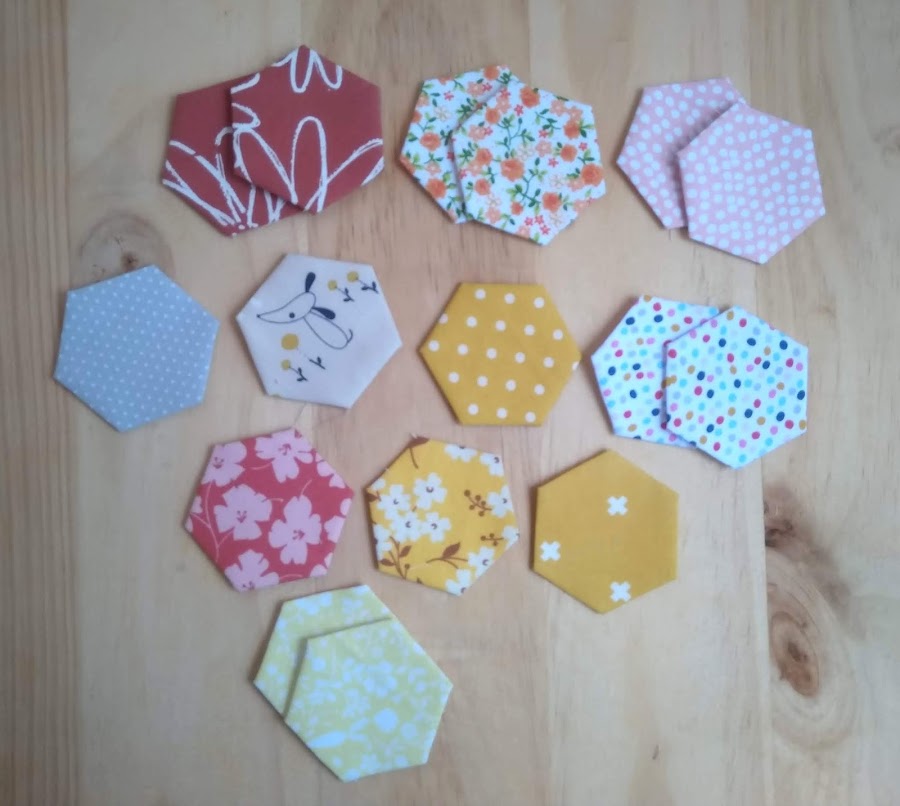 Necesito hacer hexágonos de telas lisas para los centros de las flores porque me estoy quedando sin...