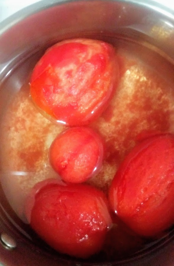 1. Poner a cocer los jitomates y el ajo en agua, aproximadamente 15-20 minutos, hasta que se suavicen y se levante la piel.