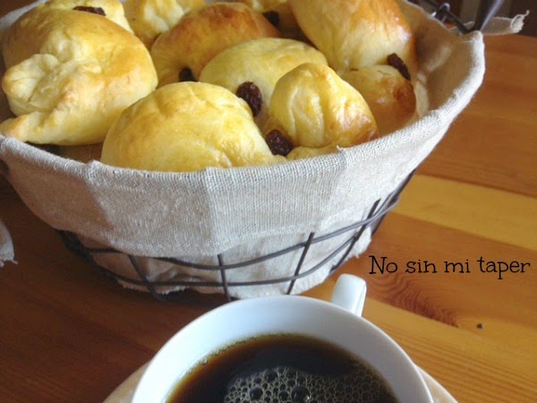 No es un bollo excesivamente dulce, pero sí muy sabroso. El aroma del azafrán es delicioso. Ideales para el desayuno, abriéndolos al medio y untándolos con mermelada de caqui y mango. Al día siguiente, si queremos que recuperen la esponjosidad, meterlos unos segundos en el microondas.