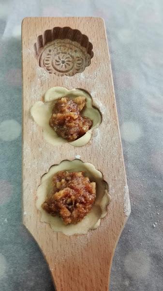 Son unas galletas de mantequilla, sin huevo y cuyo relleno varía utilizándose distintos frutos secos al gusto.
