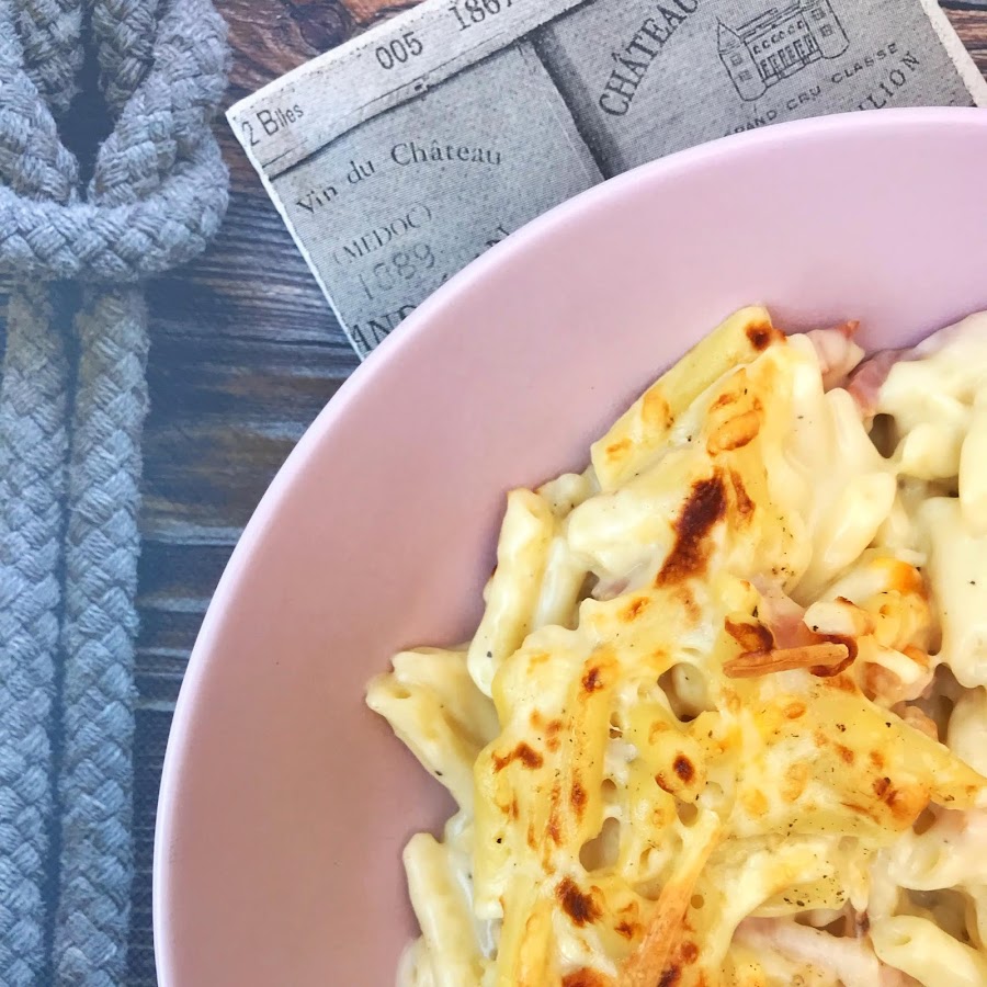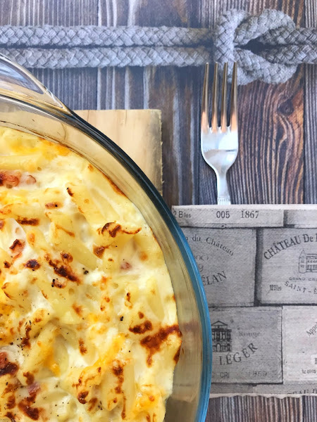 A mi manera, es decir, con bacon. Este es el típico plato estadounidense, el que sale en cualquier peli o te ponen en cualquier restaurante en EEUU, tan tradicional como una barbacoa o como el mismísimo Halloween. Y así a simple vista parece pasta con nata (crema de leche) y queso, pero no, no es nata (crema de leche) es bechamel. Te voy a explicar como es de fácil hacer mi versión y no te quedes sin probarlos, pero déjalos para de vez en cuando, que son muy calóricos.