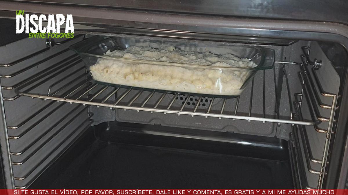 5Y lo metemos en el horno, que debe estar previamente precalentado. Lo metemos en la parte de arriba del horno y lo dejamos 15 minutos a 200 grados centigrados. Y después dejamos 3 minutos más con el gratinador. Lo sacamos del horno y ya estaría listo para comer.