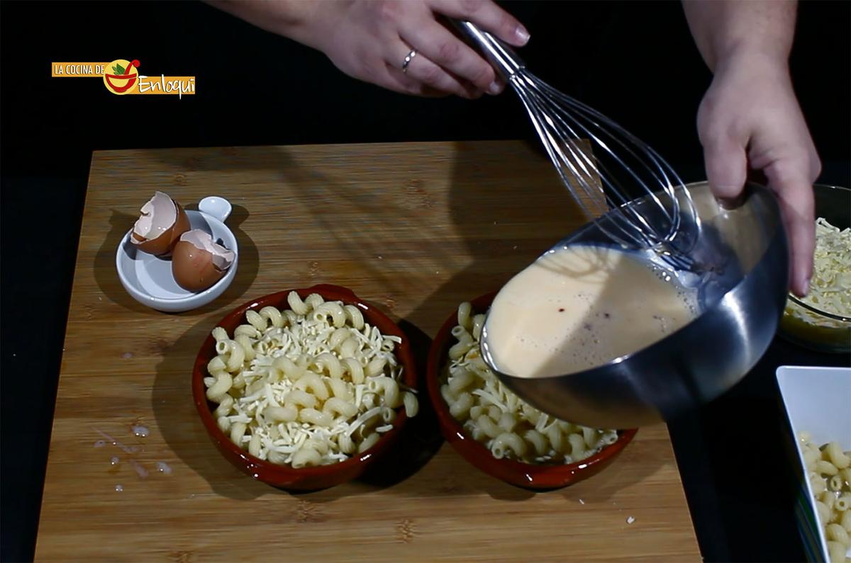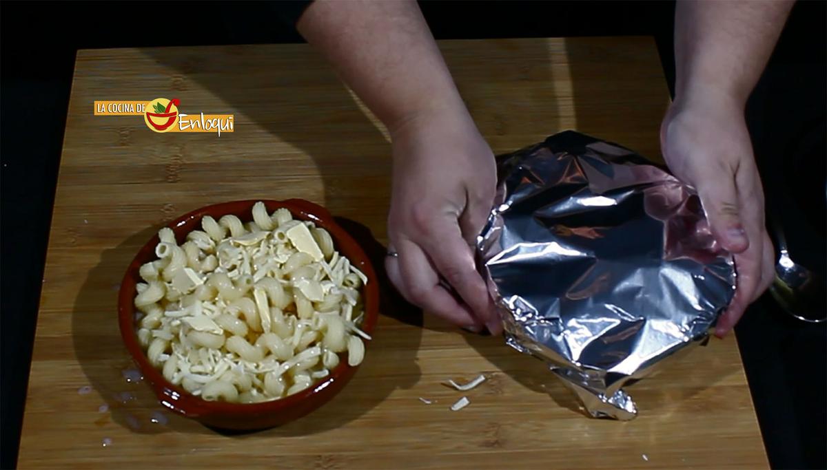 Coloca una capa de pasta cocida y pon por encima un buen puñadito de queso rallado. Alterna así tantas capas como quieras o, como te permita el recipiente elegido. Termina con una capa de pasta.