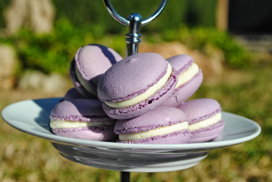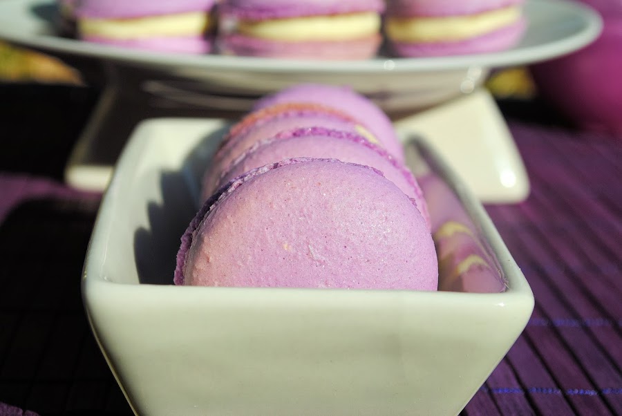 Para el relleno he usado el mismo que para el hojaldre de fresas, pero sin azúcar, por que el macaron ya es muy dulce, y el aroma de violetas, pero tu pon el que te guste!