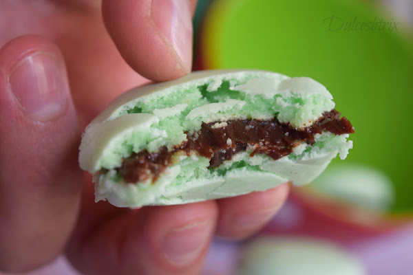 Despegarlos con cuidado cuando templen un poco y enfriarlos en una rejilla, guardar en un recipiente cerrado en el frigorífico y dejarlos reposar si es posible hasta el día siguiente para montarlos. El montaje es simple ponemos una concha le añadimos el relleno (receta a continuación)y tapamos con otra concha apretando un poquito pero con cuidado para no romperlos. Salen aproximadamente unos 30 Macarons ya montados.