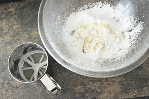Tamizar las almendras molidas y el azúcar glas. Reservar.