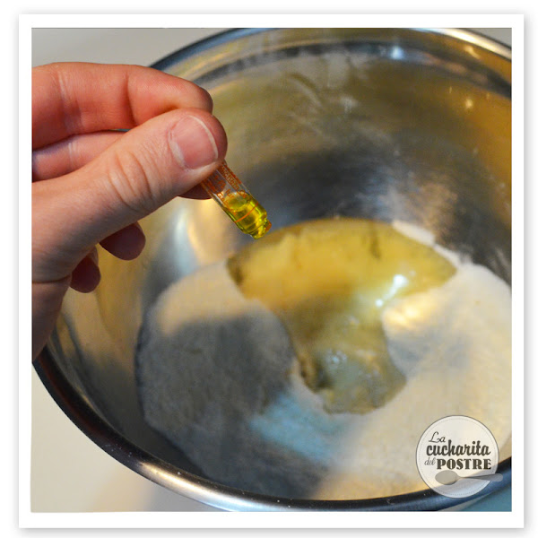 5. ...y unas gotitas de aroma de limón para que la masa tenga sabor.