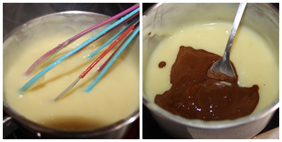 En un cazo ponemos los huevos y los batimos un poco con el azúcar, añadimos la maizena diluida en un poco de leche fría, añadimos el resto de la leche y lo llevamos al fuego hasta que empiece a hervir y espese. Fuera del fuego añadimos el café instantáneo diluido en un poquito de leche. Mezclamos con la crema y lo ponemos al fuego un minuto mas.