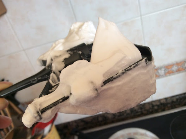 A continuación, 3 minutos, 50º, vel. 3.5. La consistencia del merengue ha de ser dura, si se pone un pico en vertical, no debería doblarse. En caso de que no esté suficientemente consistente, batir otro minuto más.