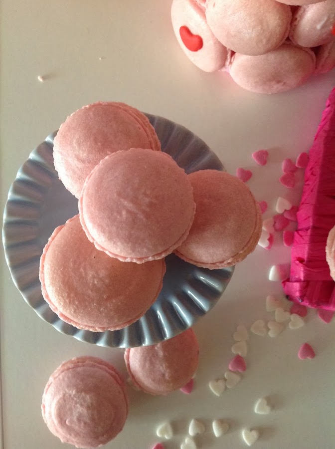 Yo hice estos macarons de merengue francés porque me parecieron más sencillos. Había otros con merengue italiano pero, esos los dejo para cuando me compre el termómetro de cocina. Además, no sé si lo sabéis pero participo en la revista de Fanscakes "Dulce Blogosfera". Flavia que es una chica majísima, nos ha retado a publicar una receta especial para San Valentín y estoy especialmente invitada. Por eso, ya sé que es un tópico pero como todo lo francés es tan romántico, pues que mejor que participar en este reto con unos macarons además de merengue francés. Los colores que he elegido también son a propósito, el rosa hace tiempo que desbancó un poco al rojo y ahora aparecen por todas partes, combinados. La verdad es que da un toque menos serio y a mi me gusta el rosa. Soy de las que se pirran por algo "pinky", como yo le digo. Será porque no tengo niñas que lo echo un poco de menos.