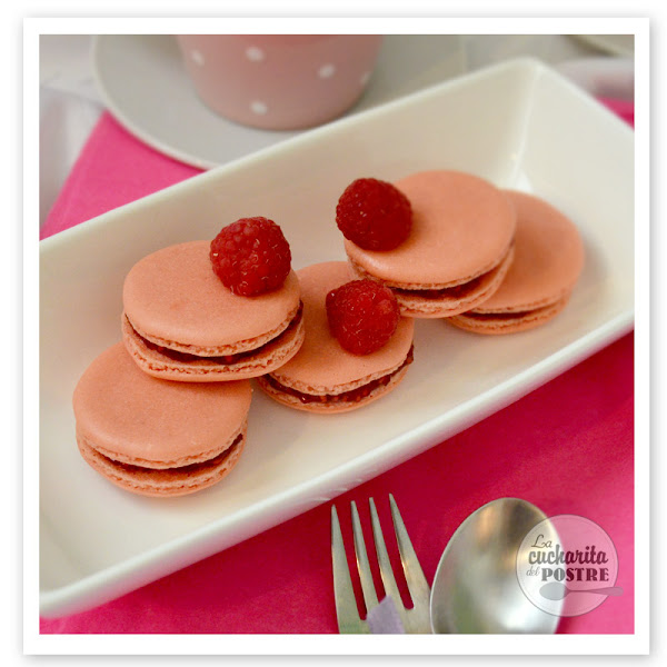 Érase una vez un postre muy puñetero que siempre traía de cabeza a todos los que intentaban prepararlo. Era un postre rebelde, complicado, imprevisible, que siempre terminaba saliendo mal, o regular, o no demasiado perfecto. Los habitantes del reino estaban aterrorizados cada vez que escuchaban su nombre y se propagaron toda clase de leyendas y mitos sobre él. Las más despiadadas y malvadas brujas, hechiceras o madrastras eran simples gatitos a su lado. Hasta que un día, los planetas se alinearon de tal forma que este postre dejó de ser el patito feo y se convirtió en cisne. Dejó de asustar y empezó a enamorar, a encantar y a salir como tendría que haber salido desde un principio. Y aquellos que, tristes, se resignaban a darlo por perdido, volvieron a poner en marcha sus hornos, sus tamices y sus robots de cocina y se pusieron manos a la obra para prepararlo. Y fueron felices y comieron MACARONS DE FRAMBUESA.
