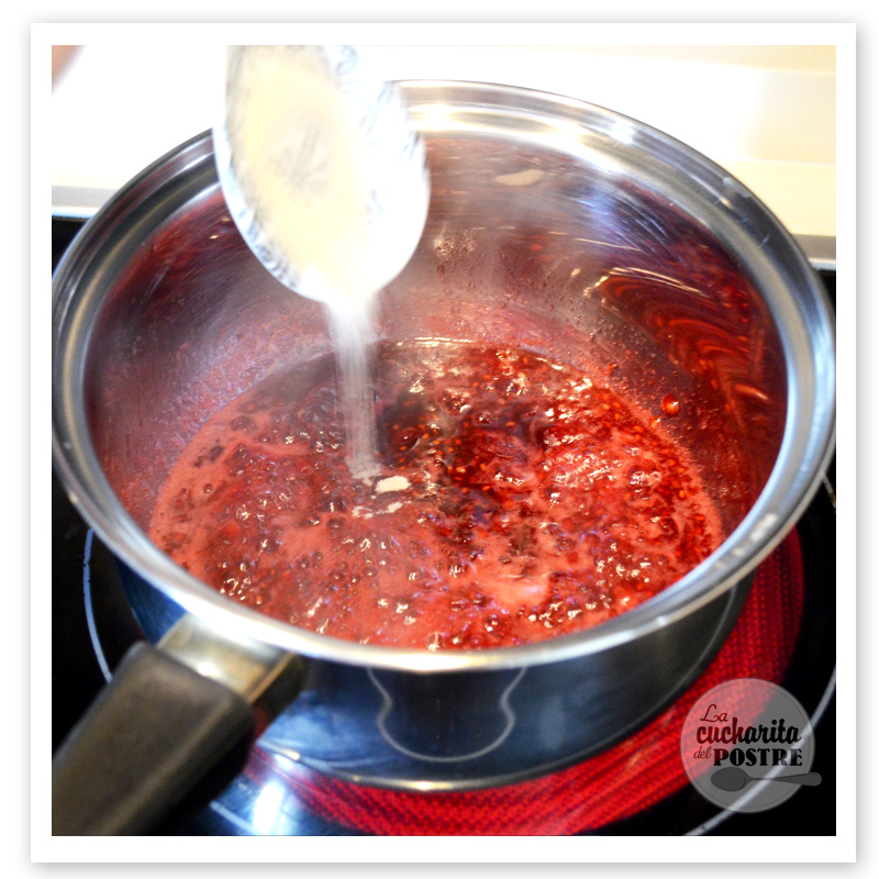 CONSEJO: si te resultan desagradables las semillas de las frambuesas (a mí me encantan), puedes colar la mezcla antes de añadir el agar-agar.