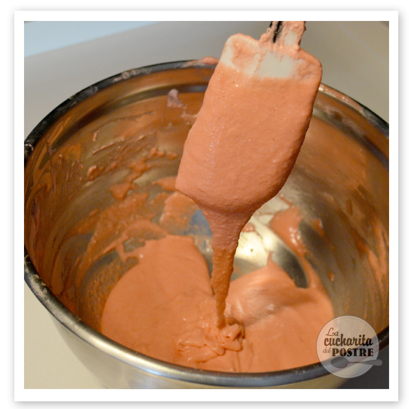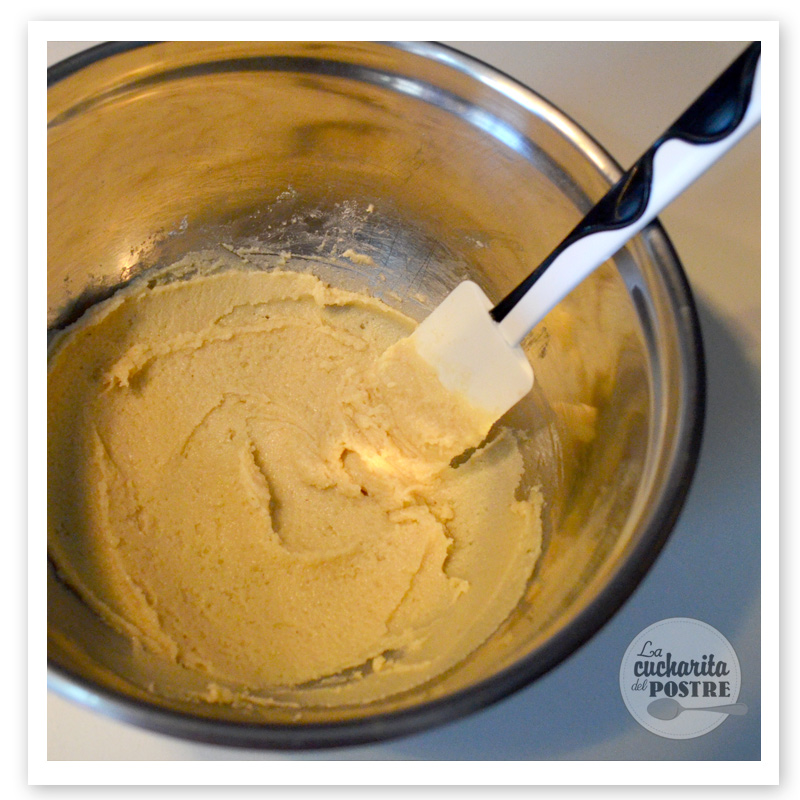 6. Te deberá de quedar una masa ni muy densa ni muy líquida. Este punto se denomina "punto de cinta" y se consigue cuando al levantar la masa con la espátula y dejarla caer, ésta cae en forma de cinta de manera continua.