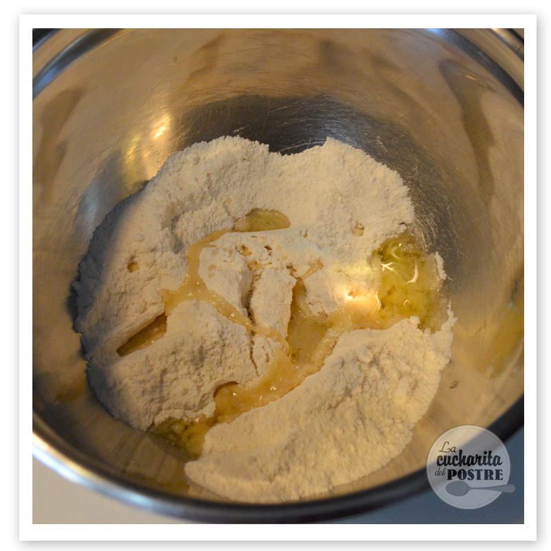 4. Mezcla bien la clara con la harina y el azúcar glasé hasta que se forme una pasta: el mazapán.