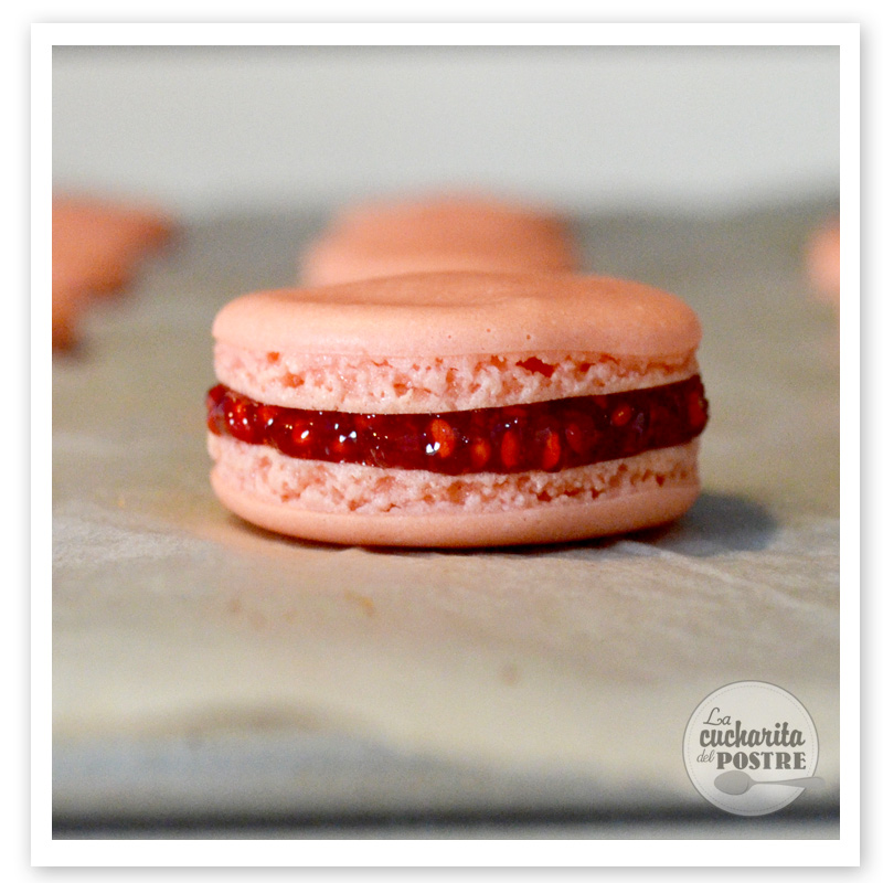 Para que el macaron esté perfecto al paladar debe quedar crujiente, no estar hueco por dentro ni estar chicloso. Y cambiando el relleno de frambuesa y el color podrás hacer macarons de lo que más te guste. Hazlos en casa, experimenta y cuéntame qué tal te han salido.