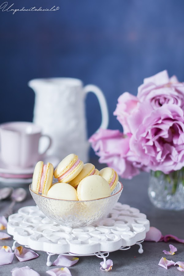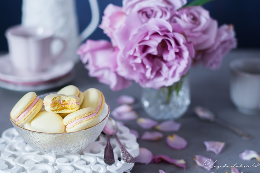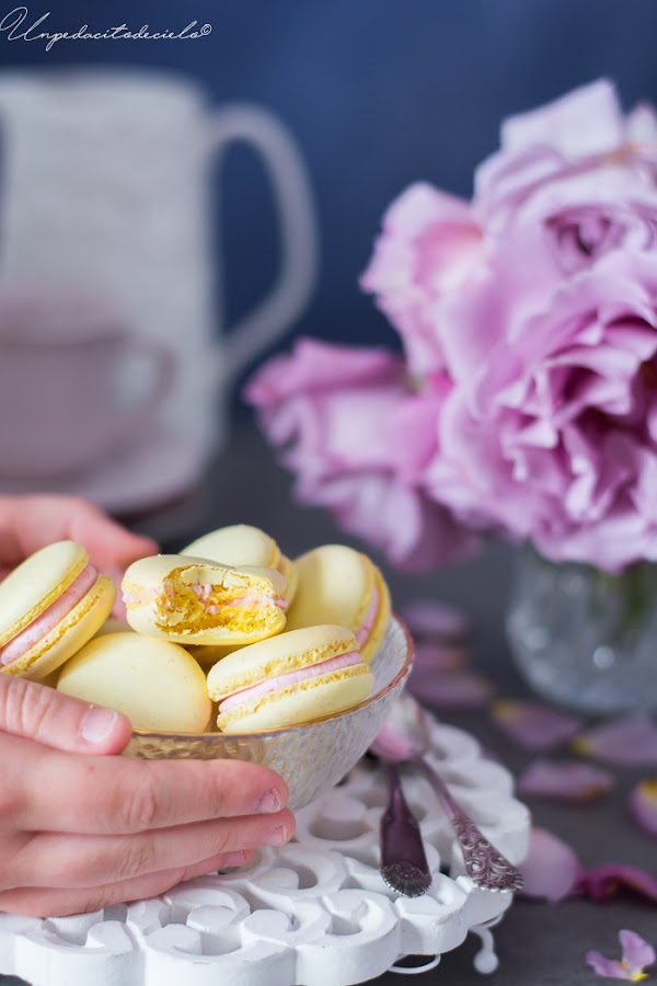 La cosa es que hace poco hice esta Tarta LimonadaRosa, que era de limón y frambuesa, y algo se me quedaría en el subconsciente que al poco tiempo me vi impelida a hacer estos macarons.