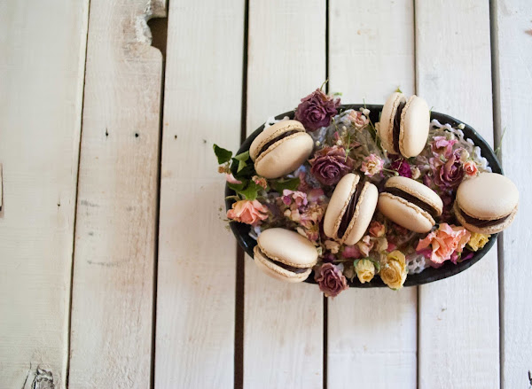Son unos macarons de café rellenos de ganache de chocolate, la combinación no puede ser más perfecta, el café potencia maravillosamente el sabor del chocolate y juntos son una delicia.