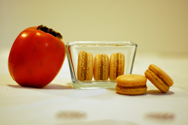 Este mes, entre la berenjena y el persimón he preferido el segundo para hacer un experimento... mis primeros macarons!