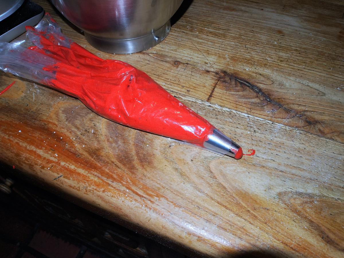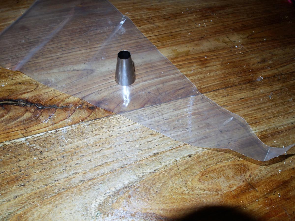 Rellenamos una manga pastelera con una boquilla redonda lisa y grande, si no tenéis vale también cortar la boca de la manga pastelera.