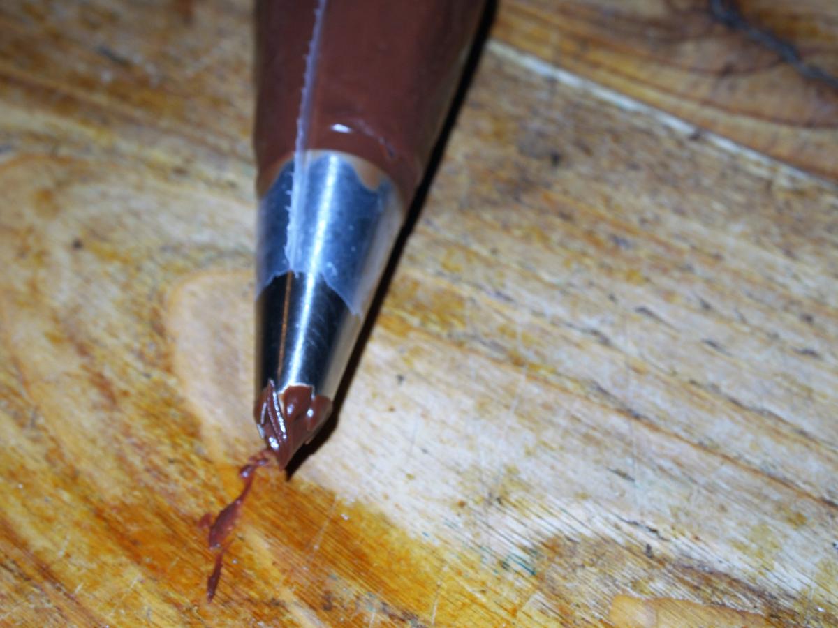Yo preparo el ganache el día antes, calentamos la nata (crema de leche) en un cazo o microondas y antes de que rompa a hervir sacamos del fuego y añadimos el chocolate troceado, hasta que se disuelva por completo. Dejamos enfriar.