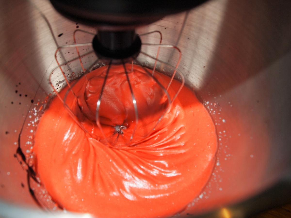 Aromas, cacao y/o colorantes al gusto. Para estos de San Valentín use una cucharada de esencia de Red Velvet y un poco de colorante alimenticio rojo.