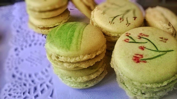 Pon tus macarons al centro del horno durante unos 13 minutos (eso es lo que dicen todos). Sin embargo, yo no tengo aún termómetro de horno y estoy segura mi horno calienta más. Yo los voy viendo. Hay que tener mucho cuidado con el horno para hornear hasta que estén listos pero que no comiencen a perder el color. Yo creo que mientras no le hayas el truco al horno, ésta es la parte más difícil: el punto justo de horneado.