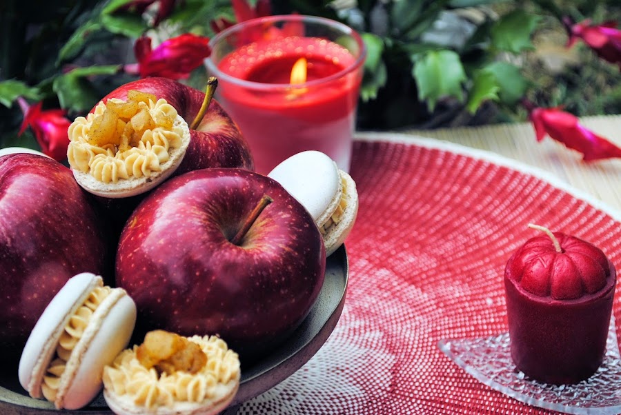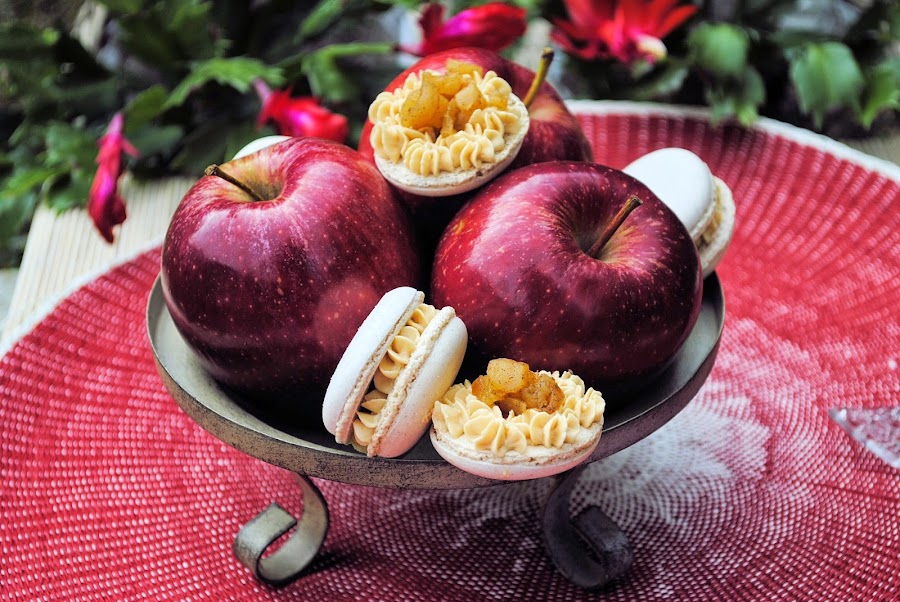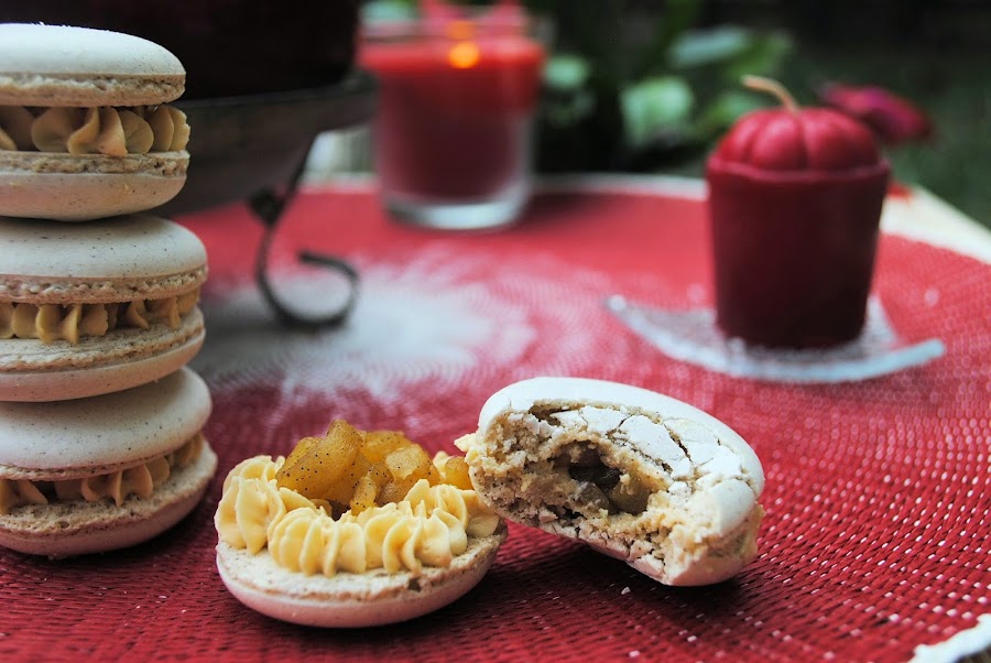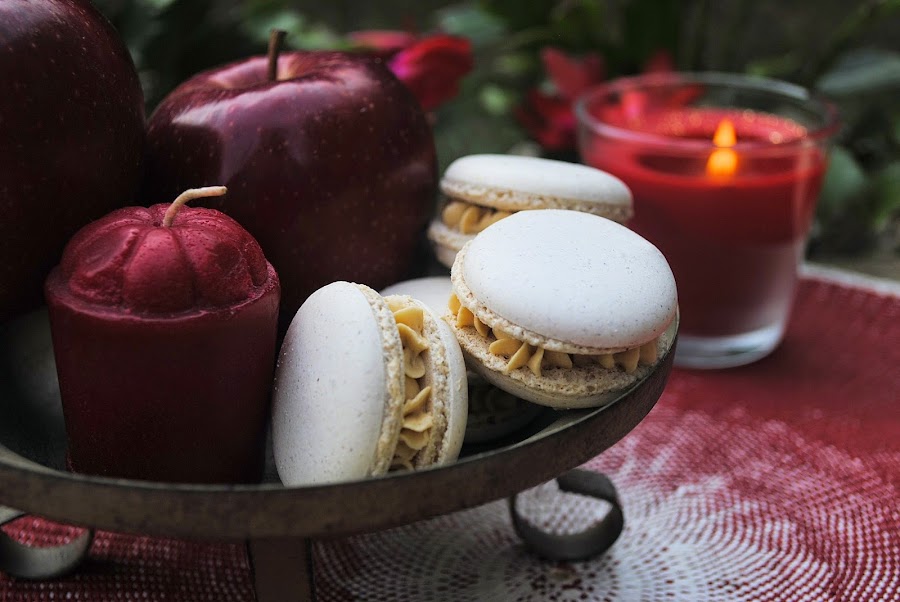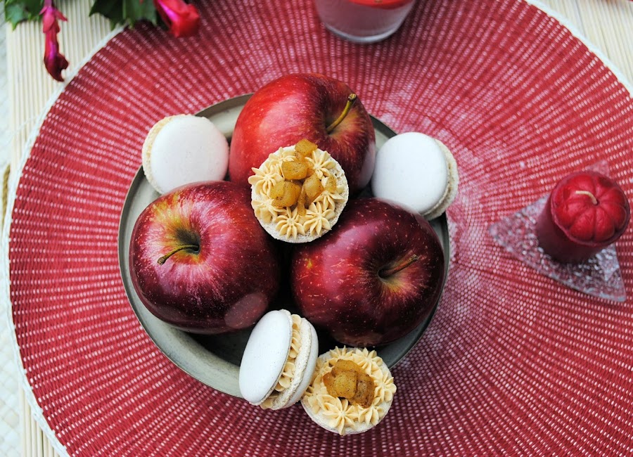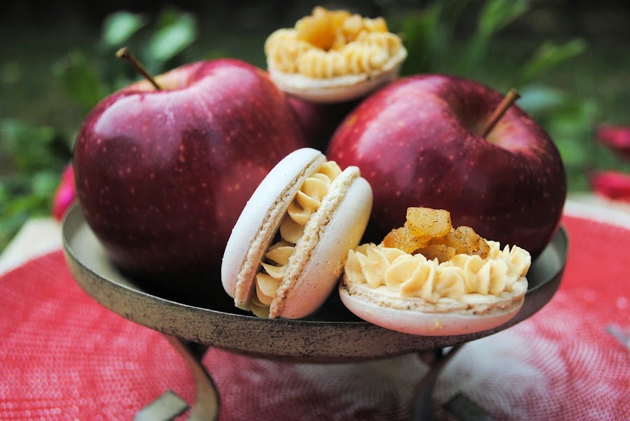 En esta ocasión son, Macarons especiados, con manzana y SMBC de caramelo salado...