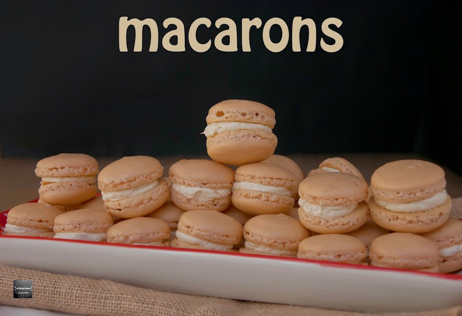 Hace más de un año publique mi primera receta de macarons, y, como recordaréis, no estaba muy contenta con el resultado, de sabor estaban muy buenos pero eran planitos...Desde entonces han pasado muchos meses hasta volver a intentarlo. Pero hace unas semanas me puse de nuevo con ellos. En un fin de semana probé dos recetas distintas y ninguna salió (foto abajo). No hay ninguna receta que me quite el sueño, por lo que hubiese desistido de volver a prepararlos...pero me di una última oportunidad, ya que los que prepara Lola Homar tuve ocasión de probarlos una vez y ella me ha insistido alguna vez que probara con su receta, que, a su vez, era de Frabisa. Esa era la última oportunidad que me iba a permitir....y mirad por donde ésta ha sido la única receta que me ha dejado contenta...sin duda tengo que perfeccionar la técnica, pero partiendo de esta receta, con la que he conseguido mis primeros macarons decentes y que se puedan llamar macarons. Los he rellenado de buttercream de vainilla, una mezcla que los hace auténticamente deliciosos e irresistibles....yo sin ser muy golosa me he dado varios paseos al frigorífico a cogerlos durante esta semana.