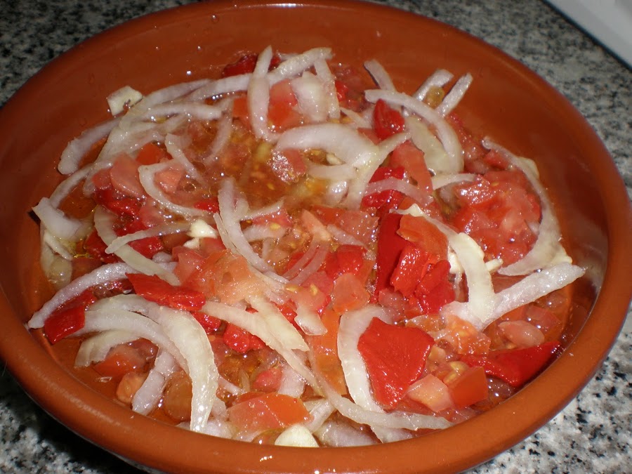 3º - Pelamos y cortamos la cebolla y ajo . ( La cebolla mejor en gajos muy finos ) .