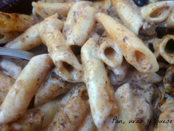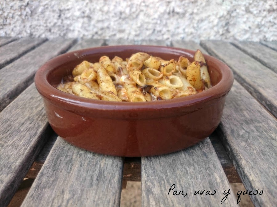 Ponemos los macarrones en una bandeja apta para el horno y encima ponemos la salsa. Gratinamos durante 5 minutos, aproximadamente.