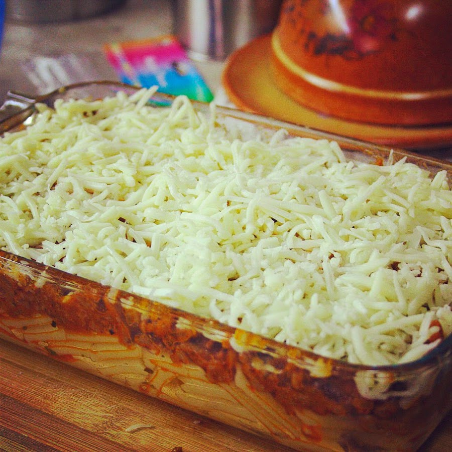 6. Cuando los macarrones estén al dente y la salsa bien cocida montamos la rustidera: