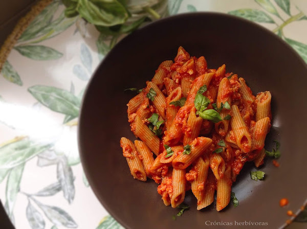 Diréis algunos que cómo va a ser boloñesa sin carne de ternera, pues esta no tiene nada que envidiarle y además, dejamos a las pobres vacas tranquilas y no nos pegamos 3h en la cocina. De hecho, el otro día en el curro me dijeron que si había vuelto a comer carne a juzgar por la pinta de los macarrones :) "¿Cuál es ese ingrediente que lleva?", me preguntaron: La soja texturizada. A ver si un día os escribo un artículo contado sobre ella. La soja texturizada la podéis encontrar en herbolarios, tiendas de alimentación dietética y hasta en supermercados. Para esta receta no hay que hidratarla ni nada, se cuece directamente con los macarrones.