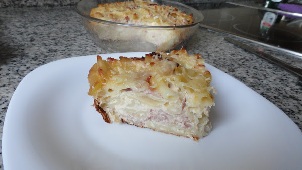 Con la pasta nunca tengo cálculo para las cantidades, siempre cuezo más de la cuenta, siempre me sobra. ... .... Peeeero siempre se puede aprovechar preparando por ejemplo una ensalada o algún otro plato. En esta ocasión estos macarrones han ido al horno y han terminado en este pastel salado tan rico. Lleva: