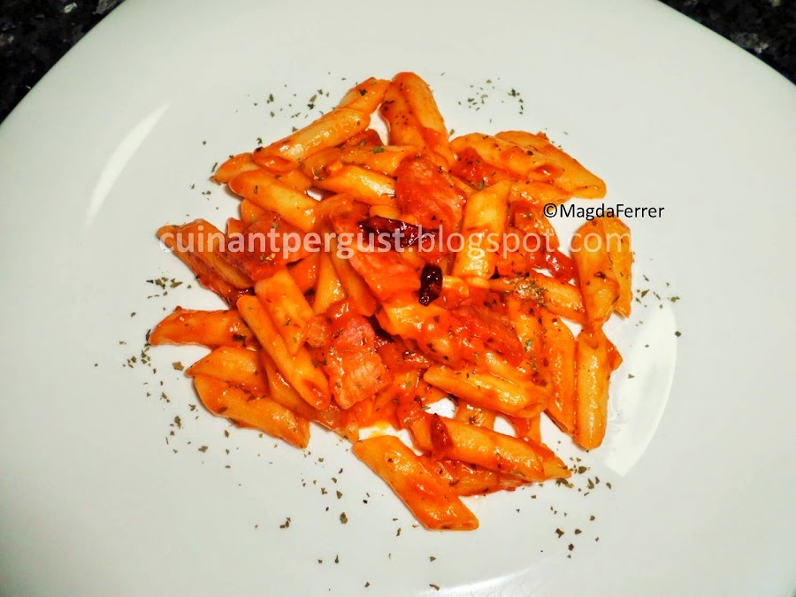 Hervir los macarrones en abundante agua salada. Escurrir, refrescar y reservar. Freír la panceta con un chorrito de aceite de oliva. Reservar. En la misma grasa deshacer la mantequilla y sofreír en ella la cebolla, el ajo y la guindilla. Añadir el tomate, salpimentar al gusto y agregar el perejil. Cuando la salsa empiece a ?burbujear? añadir la panceta y los macarrones. Remover para que todo se impregne de la salsa. Servir.