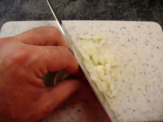 4.- Mientras picamos la cebolla y doramos con aceite.