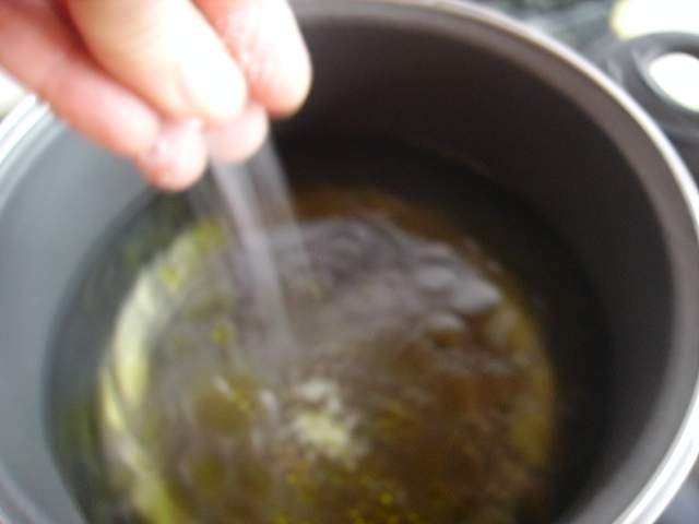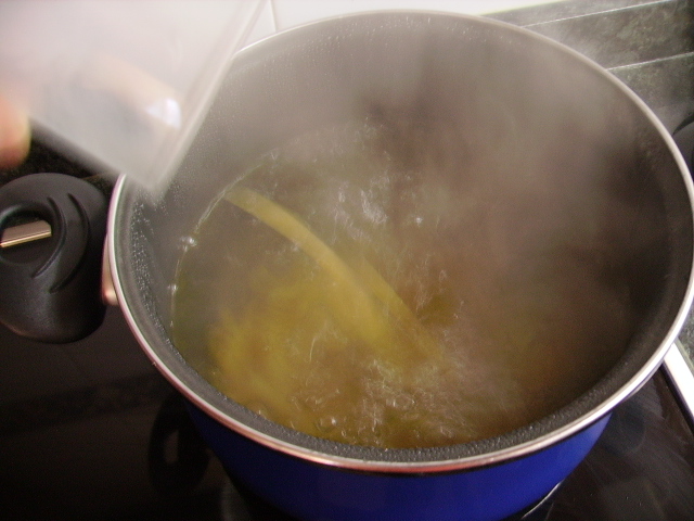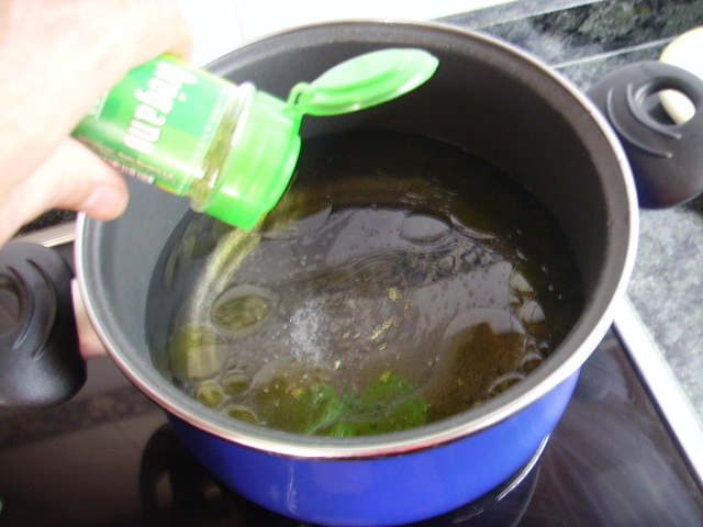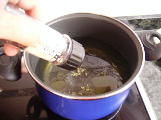 1.- Ponemos un litro de agua a hervir, con un poco de aceite, sal, orégano y pimienta.
