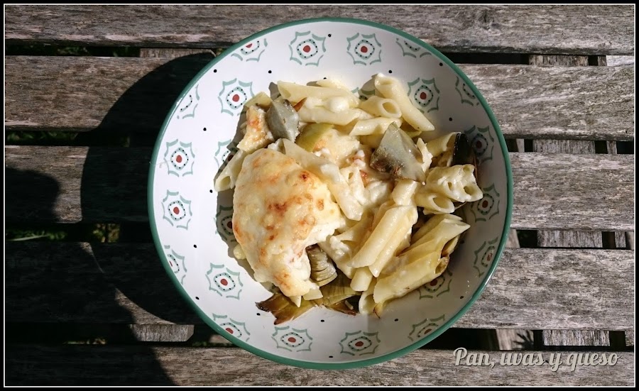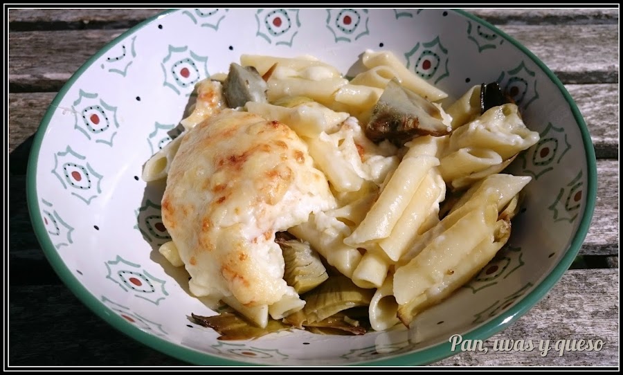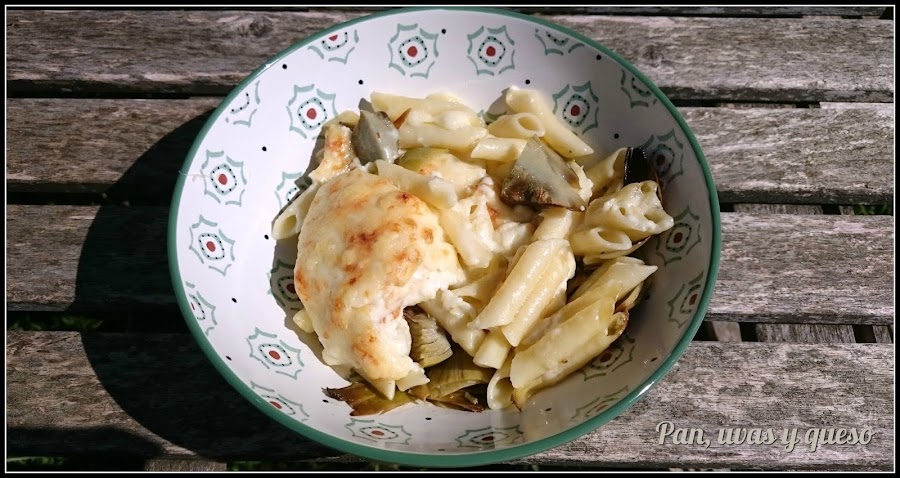 Después de probar las alcachofas confitadas en ensalada aún me sobraban 2, así que decidí prepararlas con pasta. Y para napar, una deliciosa bechamel, logrando una combinación de sabores exquisita.