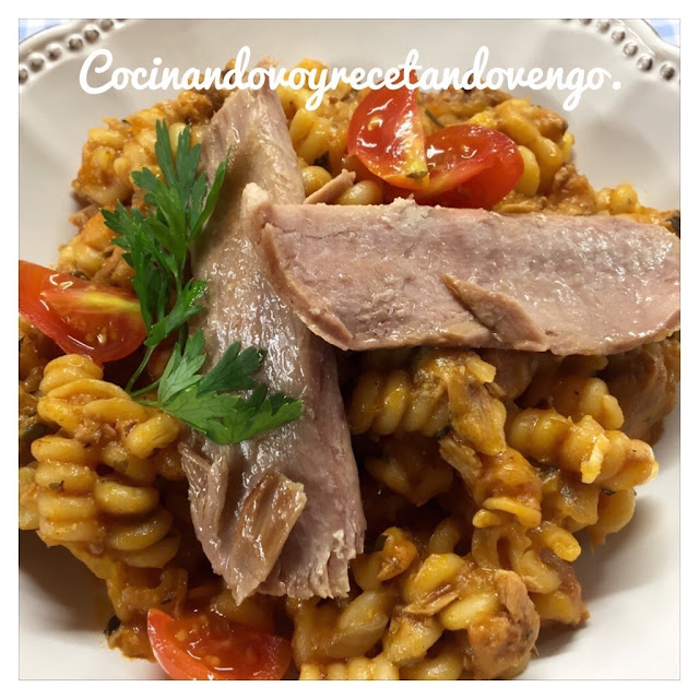 Hola a tod@s!! Hoy vamos con una receta sencillita, ideal para principiantes o para días con prisas jajajaaja, es rápida de elaborar, muy económica y socorrida que le gusta a todos en la familia. Esta receta es de fondo de despensa ya que es muy fácil tener una bolsa de macarrones, un tarro de tomate y unas latas de atún en la cocina, para días en los que nos surja algún imprevisto ;) En mi casa suelo hacerla para cuando estoy pendiente de hacer la compra y tengo poca materia prima jajajaaja En esta ocasión las fotos del paso a paso son de la elaboración con la Olla GM, pero también os explico el modo de preparación Tradicional y con Thermomix. En todos los casos el resultado es un éxito asegurado, se puede hacer como más os guste. Para mi la olla es el proceso más cómodo, limpio y rápido, pero como es una receta que he elaborado desde siempre os garantizo el resultado de 10 en los tres modos de elaboración!! :D
