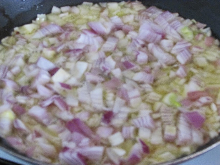 En una sartén pones un poco de aceite a calentar y echas la cebolla,