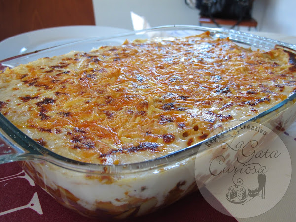 De tanto en tanto tengo que hacer estos macarrones con bechamel que son una adaptación de los que hacia mi suegra, mis hijos me los piden porque se acuerdan, sobre todo Alba. Ella hacia un poco diferente la salsa, y el punto de cocción de los macarrones era también distinto, pero como a ellos les gusta al menos un par de veces al año los hago, no los hago más no porque sean complicados, más bien es porque son algo más pesados de hacer y también de comer.
