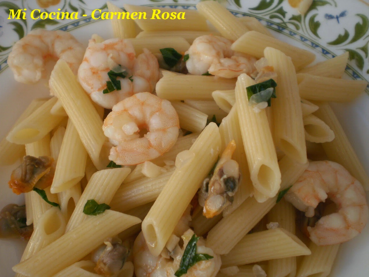 Cuando estén "al dente" escurrirlos e incorporarlos a la sartén, removiendo a fin de que los macarrones se impregnen de la deliciosa salsa?.. Y ya, si han hechado algún que otro langostino, rico, rico, rico...