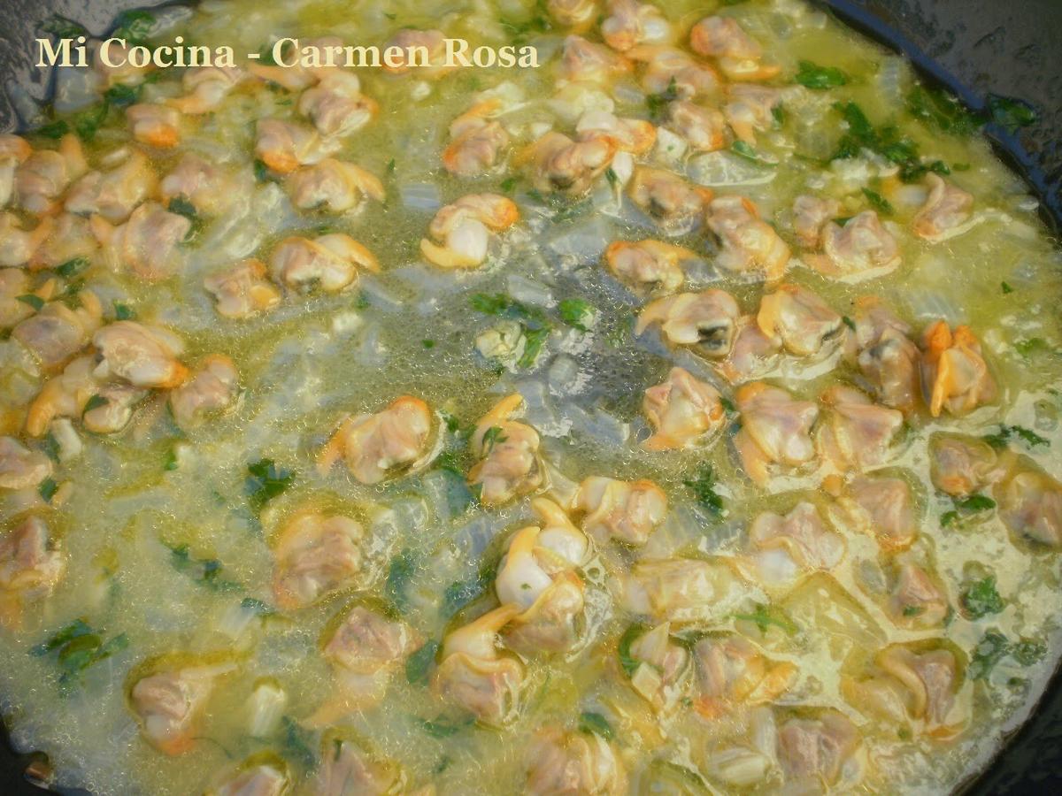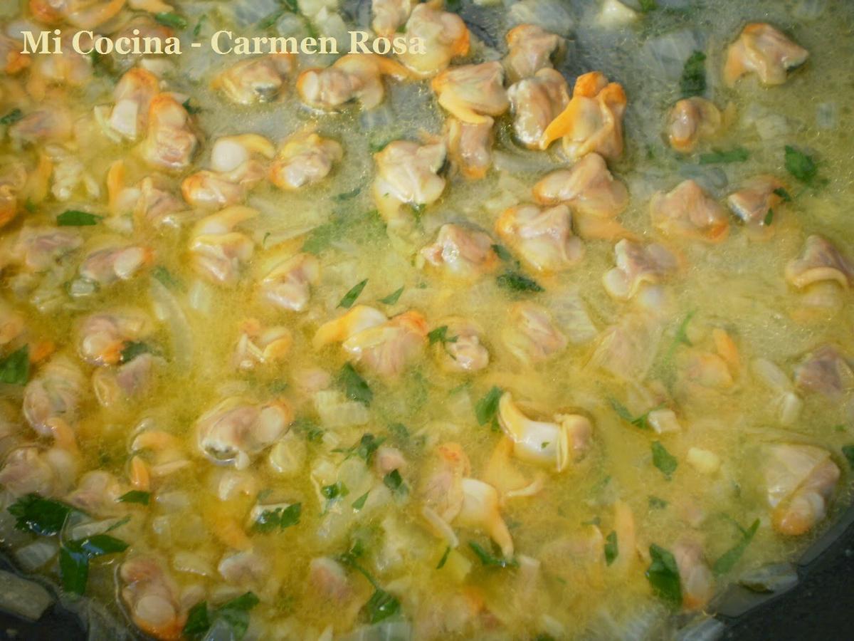 Y después de pasear, de tomar el sol, con poco tiempo para cocinar se me antoja algo fácil, rápido de preparar, sano y rico. Abro el frigorífico, miro la despensa y veo dos latas de berberechos al natural que me hacen recordar ésos currucos que en Málaga no nos comemos; berberechos enlatados, no son frescos, pero pueden valer; ya se sabe que la cocina es un mundo de posibilidades y entre ellas, por qué no, las conservas es una magnifica opción.