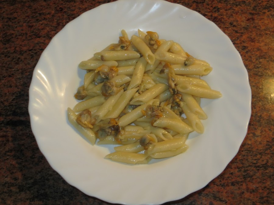 En una sartén ponemos un chorrito de aceite y echamos los ajos bien picaditos, si queréis darle un toque picante es el momento de añadir la cayena, aunque luego tendréis que retirarla para que no se la encuentre ningún comensal. Una vez que están un poco dorados añadimos la pasta, damos un par de vueltas y echamos la lata de berberechos con caldo y todo para que le dé más sabor al plato. Le dais varias vueltas y una vez que se haya consumido el caldo lo sacáis y a comer.