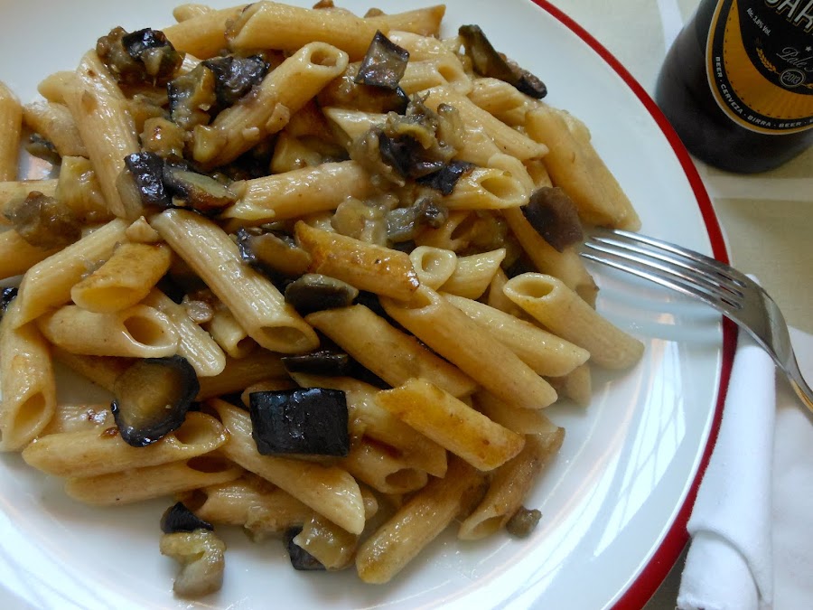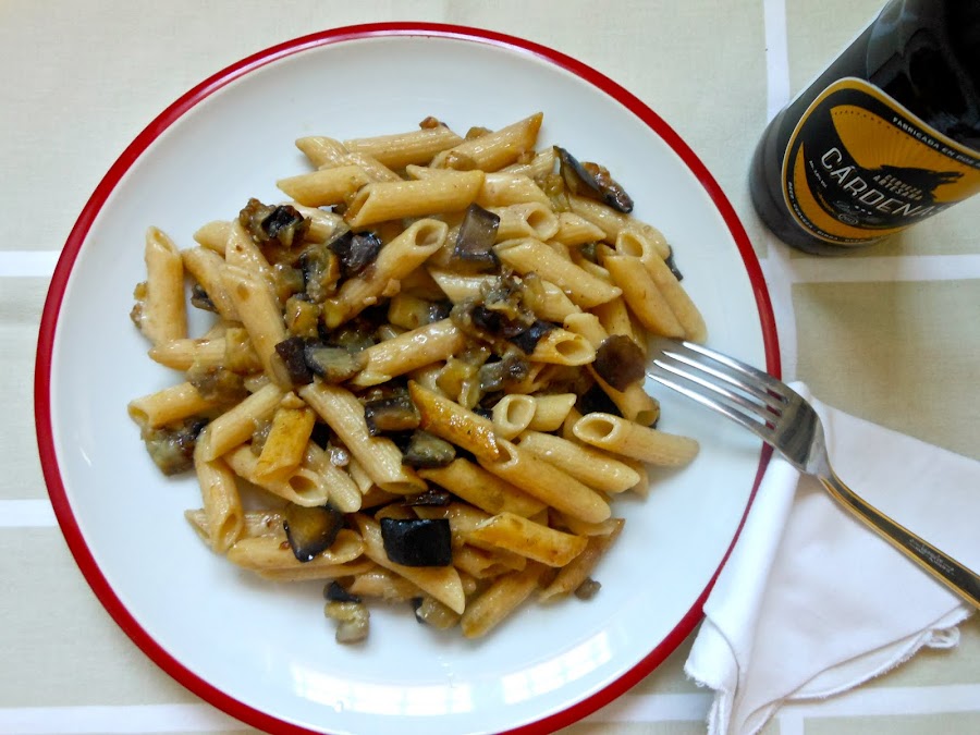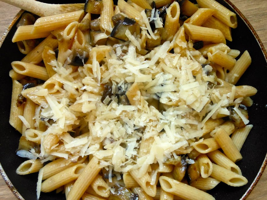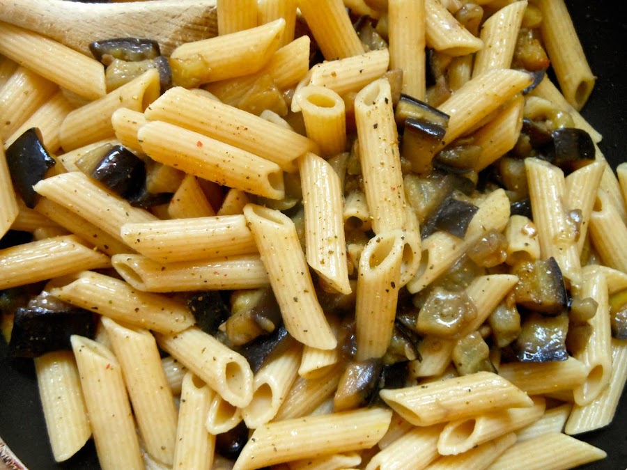 Cuando las berenjenas estén tiernas añade los macarrones y saltea el conjunto hasta que todo adquiera temperatura.