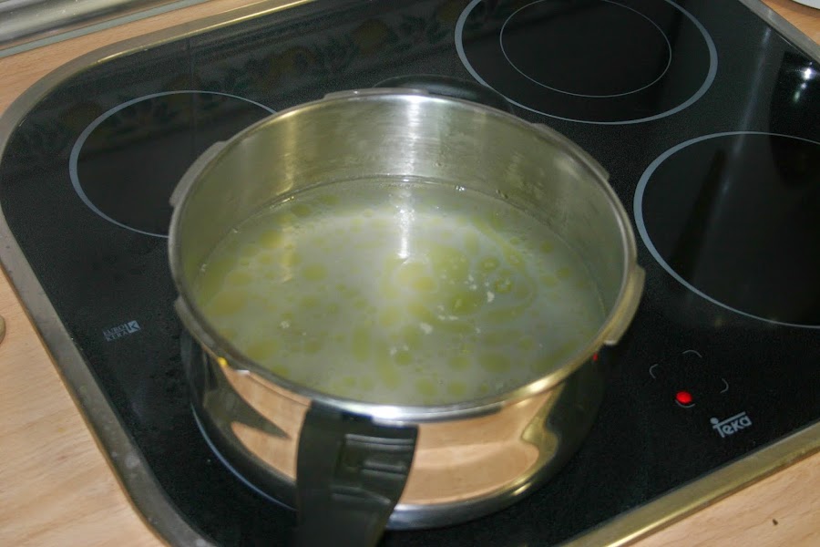 ponemos el agua a hervir con sal y aceite