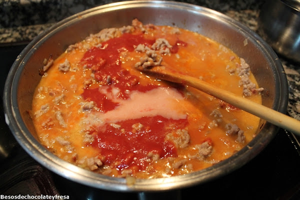 Removemos bien y dejamos que se haga todo durante 20 minutos a fuego lento. Paralelamente ponemos en una olla hervir agua con un chorrito de aceite y sal y preparamos los macarrones.