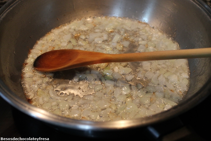 Cortamos finamente la cebolla y con un chorrito de aceite sofreímos hasta que se dore.