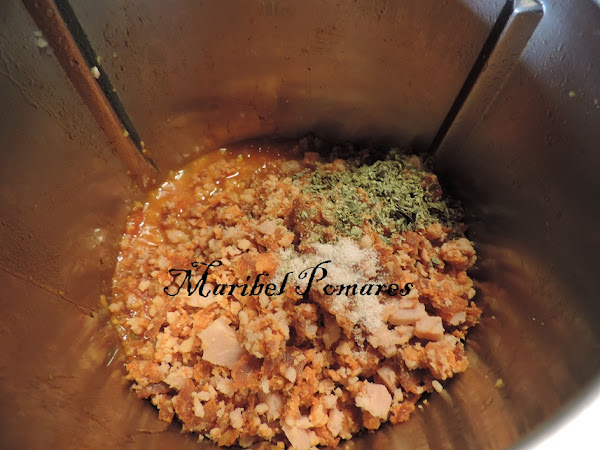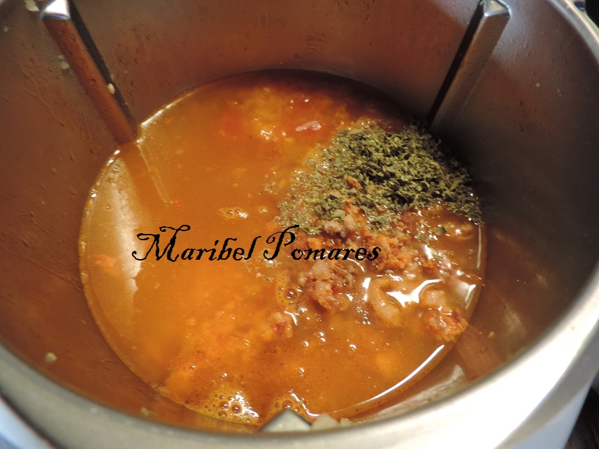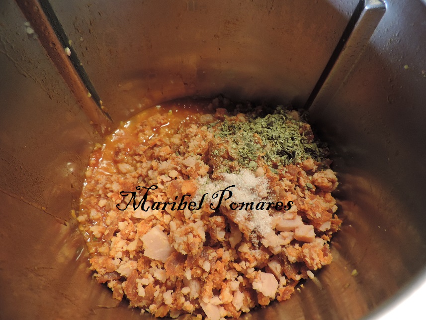 Añadimos el jamón de pavo y el chorizo que teníamos reservado, sal y orégano.
