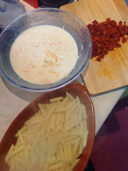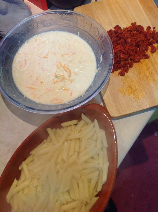 Esta receta de macarrones está muy buena y es una forma simple y sencilla de comer pasta de otra manera, vamos, para dejar la típica de macarrones con tomate y salchichas. Hasta le gustó a mi padre, que a él, eso de la pasta no le va mucho. Por eso os digo que esta receta merece la pena. La nata (crema de leche) con el queso le da un toque suave y el chorizo le aporta un sabor fuerte y especiado que va estupendamente. He cambiado un poco la receta original porque a mi entender, no le hace falta nada de sal a la mezcla, ya con el queso y el chorizo tiene suficiente. De todas formas, en mi casa no se toma mucha sal así que, lo dejo a vuestro gusto.