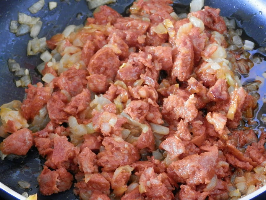 Cuando todo esté bien hecho, añade el tomate frito y da unas vueltas.